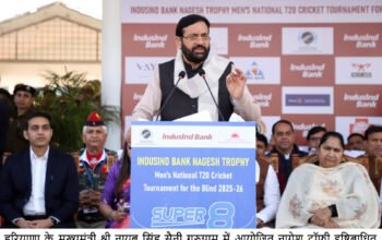 चंडीगढ़, 9 फरवरी- हरियाणा के मुख्यमंत्री श्री नायब सिंह सैनी ने कहा कि खिलाड़ी का साहस ही उसकी सबसे बड़ी ताकत है। जब हौसले बुलंद हों तो कोई भी कमी सफलता की राह नहीं रोक सकती। हमारी सरकार का संकल्प है कि हर प्रतिभा को मंच और हर सपने को उड़ान मिले। दिव्यांग खिलाड़ियों को बेहतर प्रशिक्षण और अवसर देने के लिए प्रदेश में उनके लिए विशेष खेल सुविधाएं और अलग स्टेडियम विकसित किया जाएगा। यह बात मुख्यमंत्री ने सोमवार को ताऊ देवीलाल स्टेडियम, गुरुग्राम के क्रिकेट ग्राउंड में नागेश ट्रॉफी दृष्टिबाधित राष्ट्रीय टी-20 क्रिकेट प्रतियोगिता (पुरुष) के उद्घाटन अवसर पर कही।